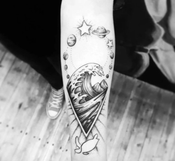 浪花纹身图案-创意精致的夏日气息十足的文艺唯美浪花纹身图案