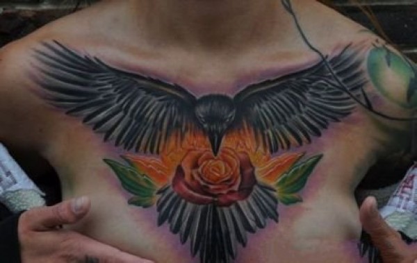 女性大花胸纹身_43张霸气漂亮的女性大花胸纹身图案作品