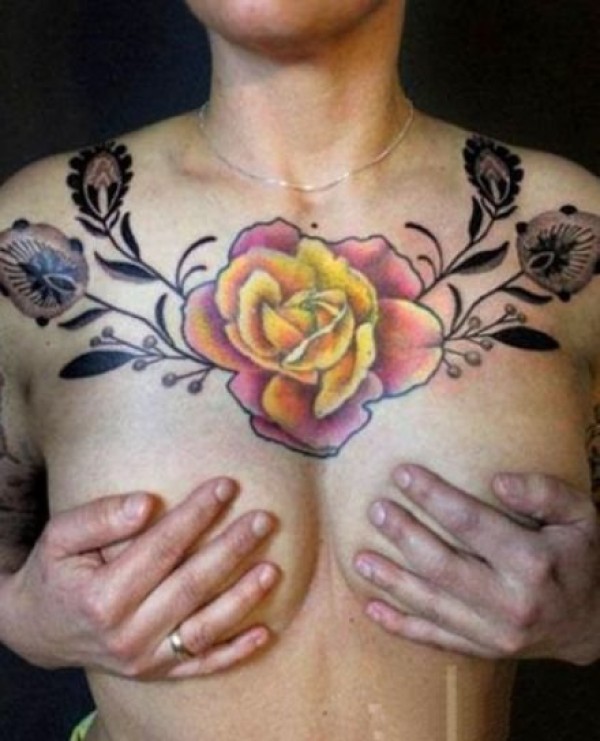 女性大花胸纹身_43张霸气漂亮的女性大花胸纹身图案作品