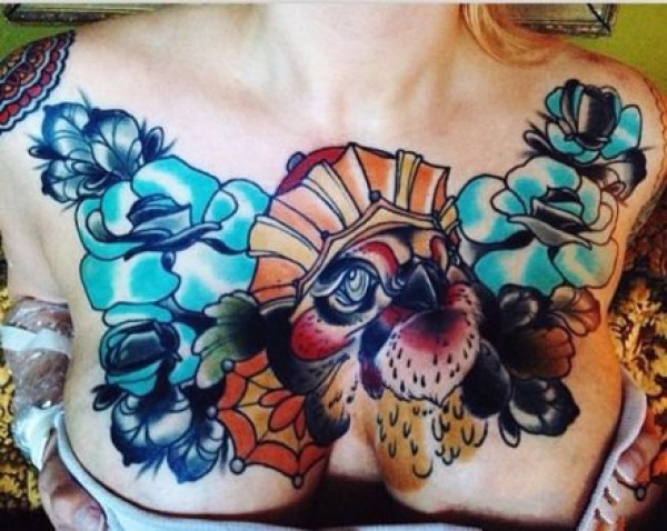 女性大花胸纹身_43张霸气漂亮的女性大花胸纹身图案作品