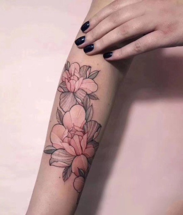 18张女生的粉红色素净的花朵纹身图案