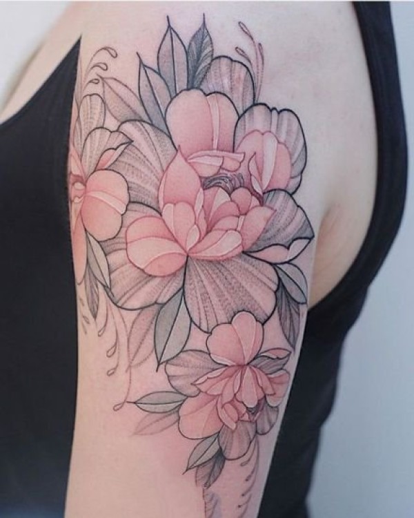 一款女性胸口狐狸牡丹纹身图案_女生纹身图案大全_纹身图吧