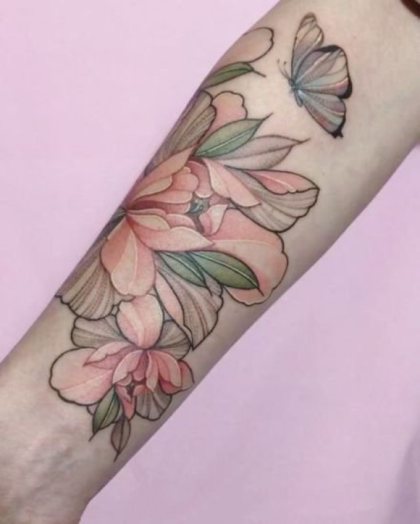 18张女生的粉红色素净的花朵纹身图案