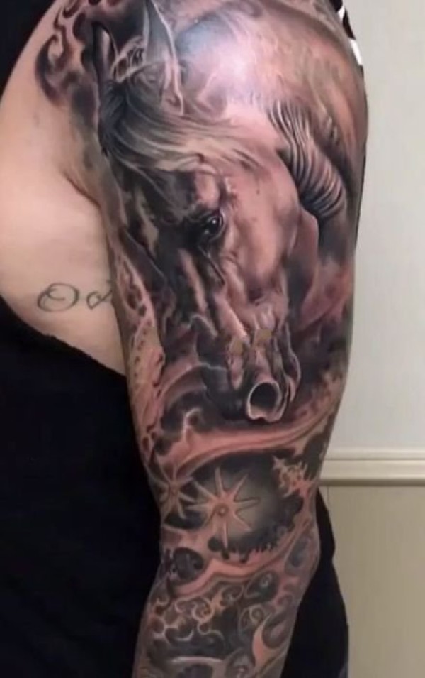 马纹身图案 10款黑灰或彩绘的纹身动物马图案
