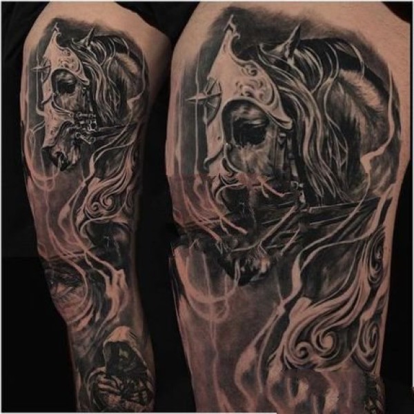 马纹身图案 10款黑灰或彩绘的纹身动物马图案