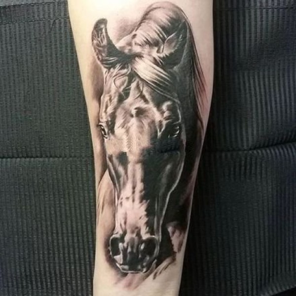 马纹身图案 10款黑灰或彩绘的纹身动物马图案