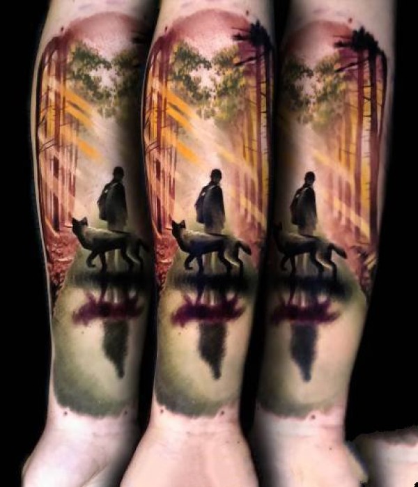 手臂重彩色梦幻感觉的纹身图案