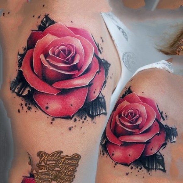 唯美时尚的玫瑰花纹身_玫瑰花纹身图案大全_纹身图吧