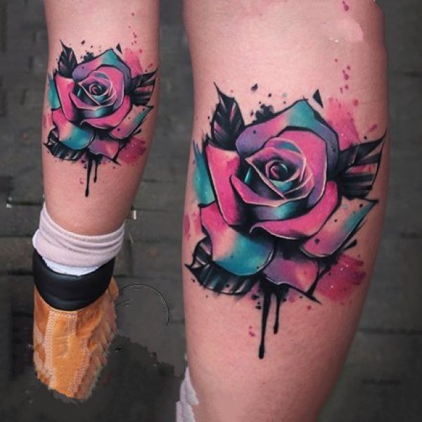 小腿玫瑰花纹身:9张小腿上漂亮的一组玫瑰花纹身图案