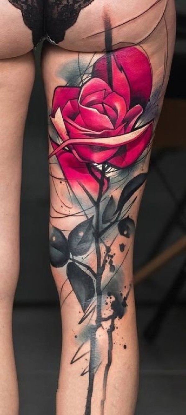 女生腿部唯美潮流的school玫瑰花纹身图案_玫瑰花纹身图案大全_纹身图吧