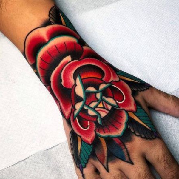 oldschool风格的红色梵花纹身图