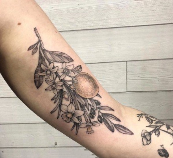大臂素花纹身 9款女士的大臂黑灰花朵植物纹身图案