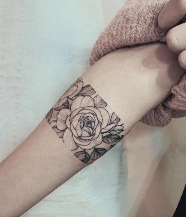 大臂素花纹身 9款女士的大臂黑灰花朵植物纹身图案