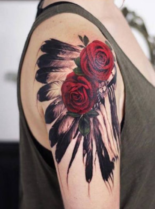欧美玫瑰纹身 男生手臂上花朵纹身图片