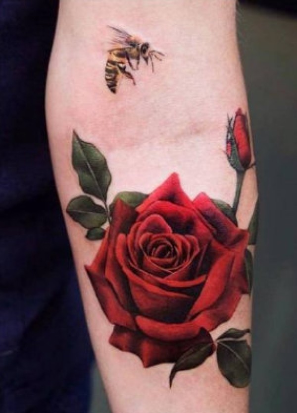 欧美玫瑰纹身 男生手臂上花朵纹身图片
