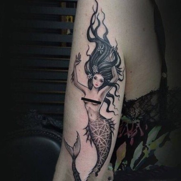 纹身美人鱼 魅力动人的美人鱼纹身图案