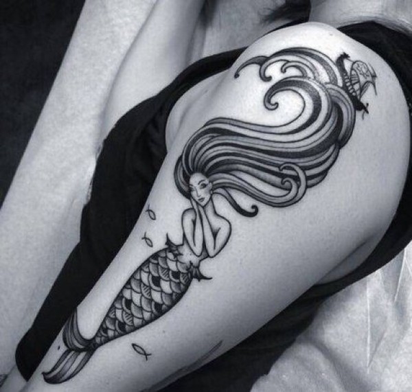 纹身美人鱼 魅力动人的美人鱼纹身图案