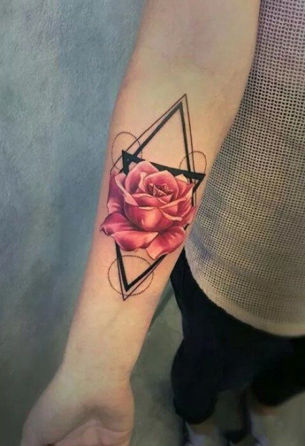 欧美玫瑰纹身 男生手臂上花朵纹身图片