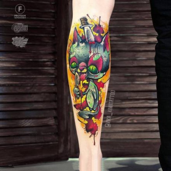 27组水彩跟卡通相结合的彩色纹身作品