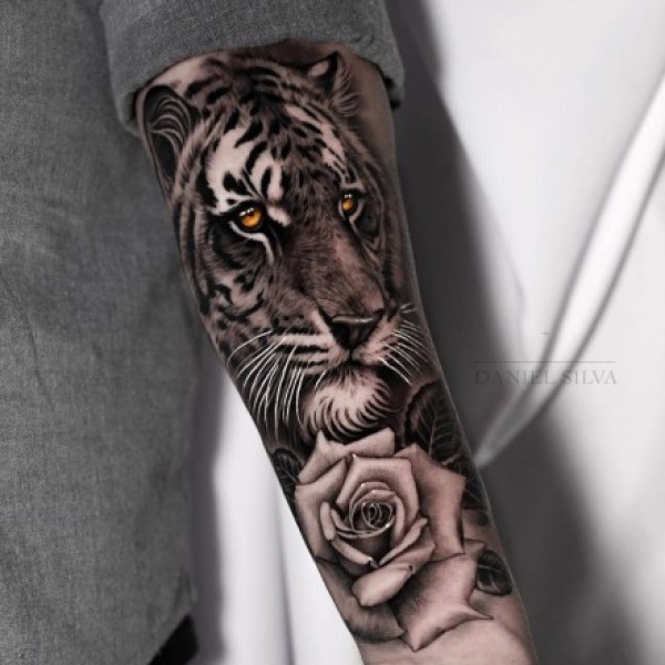 狮头虎头纹身 9组逼真的手臂包臂写实虎头和狮子头纹身图案