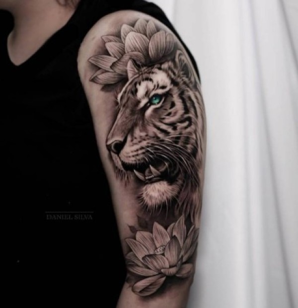 男性们都喜欢这样帅气的凶猛的老虎纹身图案
