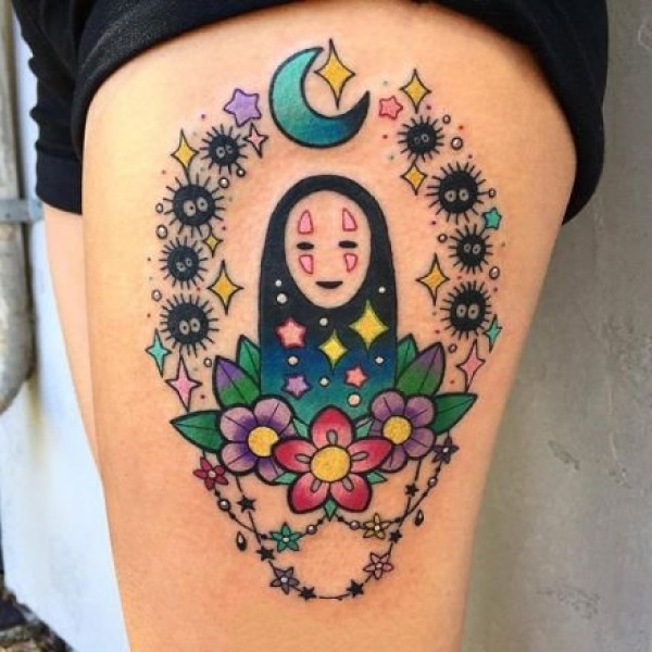 无脸男图案 神秘而又不失柔情的宫崎骏动漫无脸男纹身图案