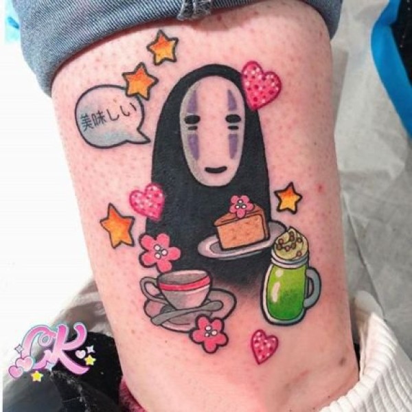 无脸男图案 神秘而又不失柔情的宫崎骏动漫无脸男纹身图案
