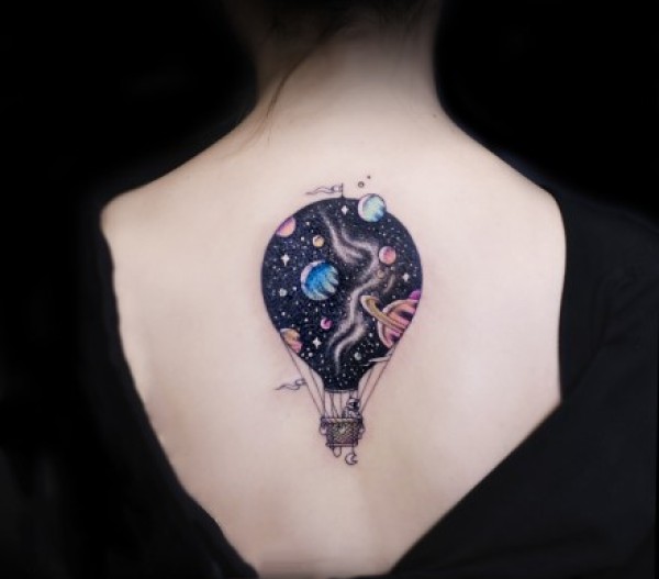 热气球纹身图案身 女生大腿上彩色的热气球纹身图片