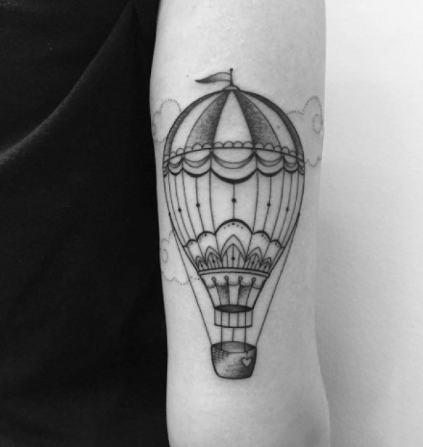 手臂纹身图片 男生手臂上人物和热气球纹身图片