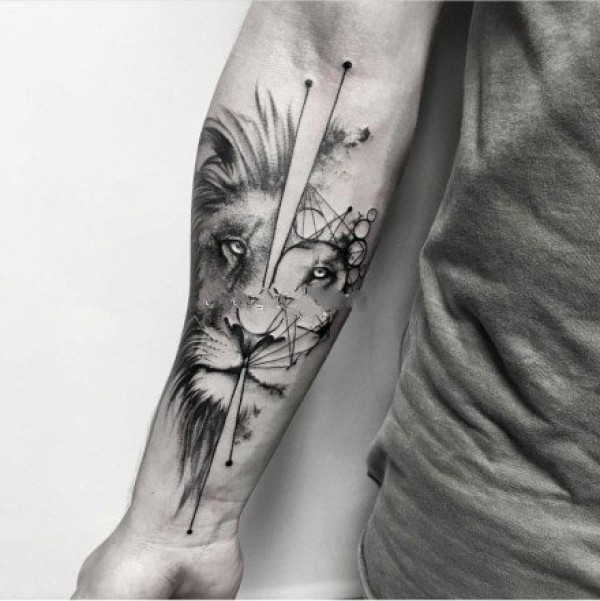 狮子纹身图--十二星座之狮子座的创意狮子纹身图案