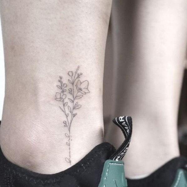女生脚踝上的小清新花朵纹身图片