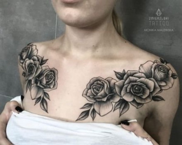 女生肩花纹身_15张女性双肩对称的肩花纹身图案作品图片