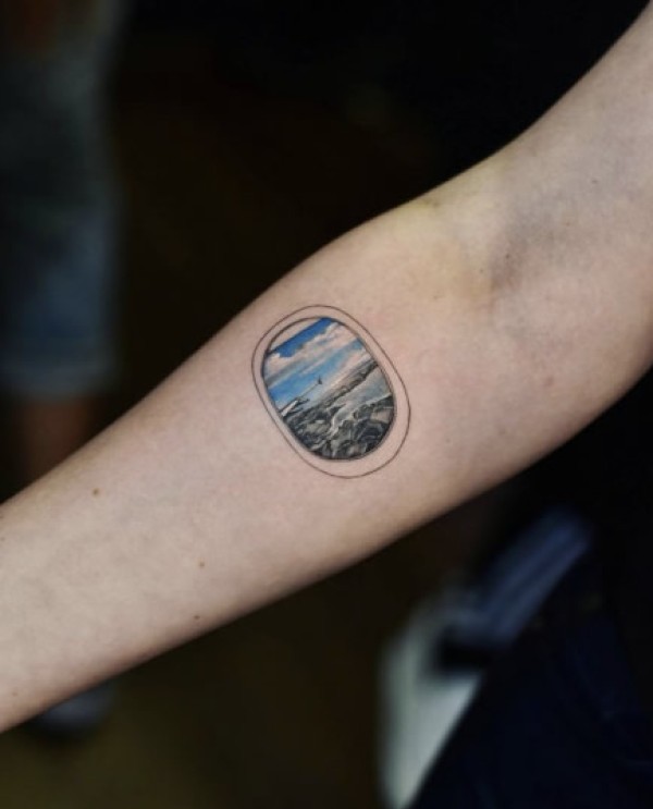 圆形风景纹身--几张几何圆形+风景纹身图案作品