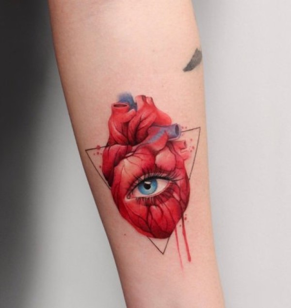 胳膊原创水彩心上钥匙纹身图案