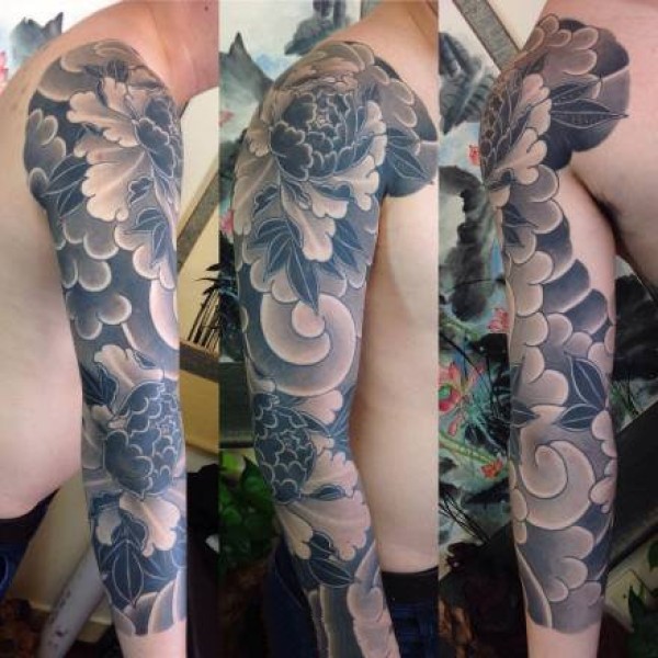 欧美花臂纹身_22张霸气黑灰欧美大黑花臂纹身图案作品图片