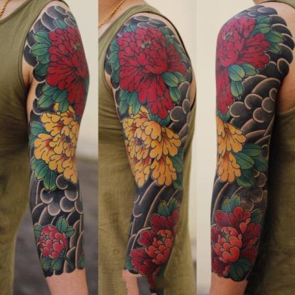 传统风格的一组男性花臂和花腿纹身图案欣赏