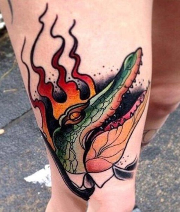 鳄鱼纹身图案 9张凶猛残忍的鳄鱼纹身图案