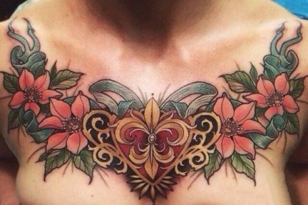 女性大花胸纹身_43张霸气漂亮的女性大花胸纹身图案作品