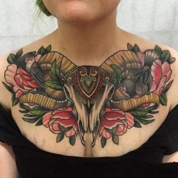 女性大花胸纹身_43张霸气漂亮的女性大花胸纹身图案作品