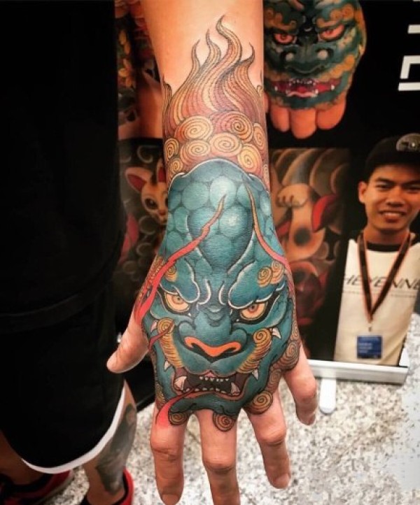 9张满手背的福狮般若等传统纹身图案