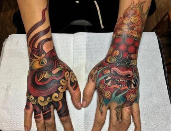 9张满手背的福狮般若等传统纹身图案