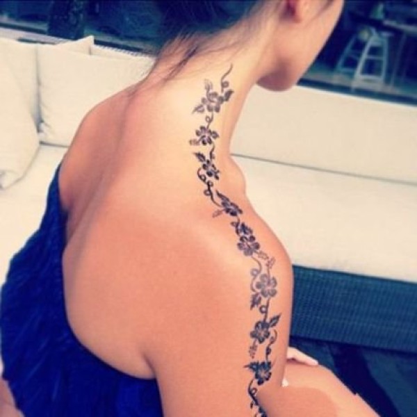 性感肩花纹身 适合女生的锁骨肩部花朵纹身图片
