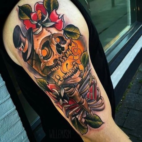 欧美花臂纹身_22张霸气黑灰欧美大黑花臂纹身图案作品图片