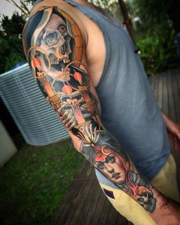 欧美花臂纹身_22张霸气黑灰欧美大黑花臂纹身图案作品图片