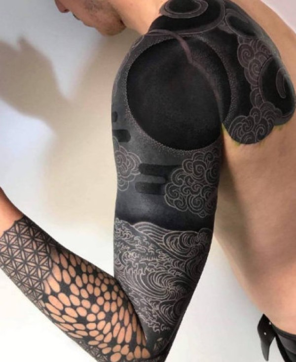 25款男性黑色手臂线条纹身点刺技巧半甲纹身图案