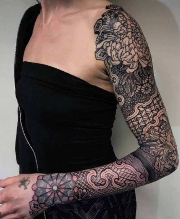 传统图腾与几何图案相结合纹身作品