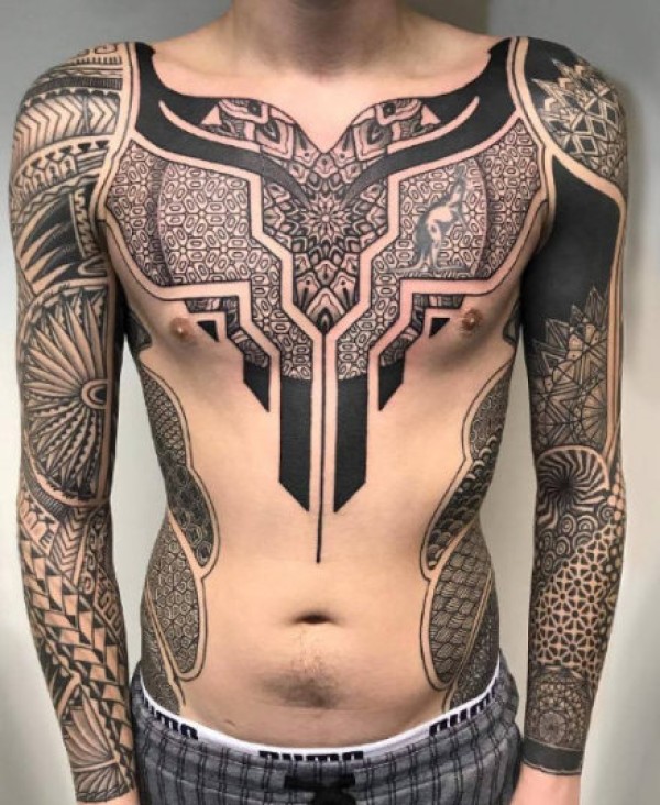 传统图腾与几何图案相结合纹身作品