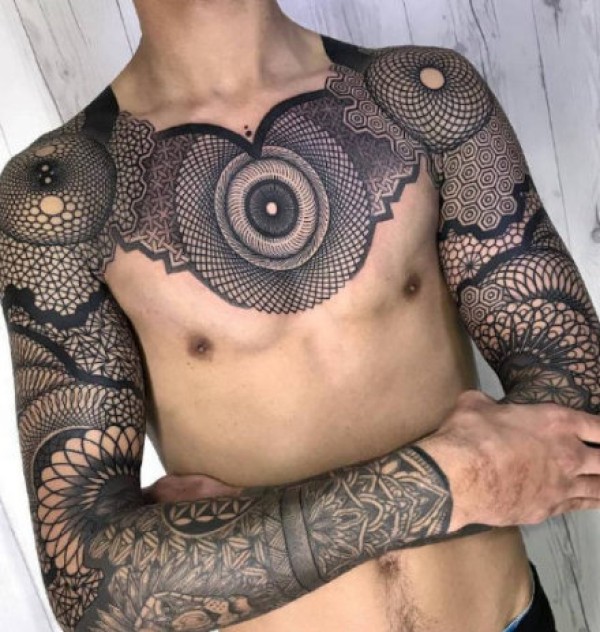 传统图腾与几何图案相结合纹身作品