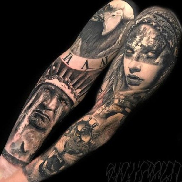 国外的欧美大花臂写实纹身图案作品9张