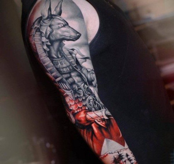 大臂外侧的9款包臂欧美写实纹身图片